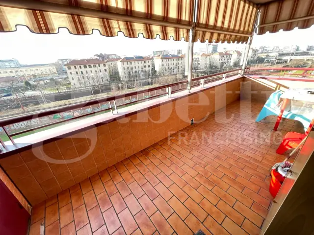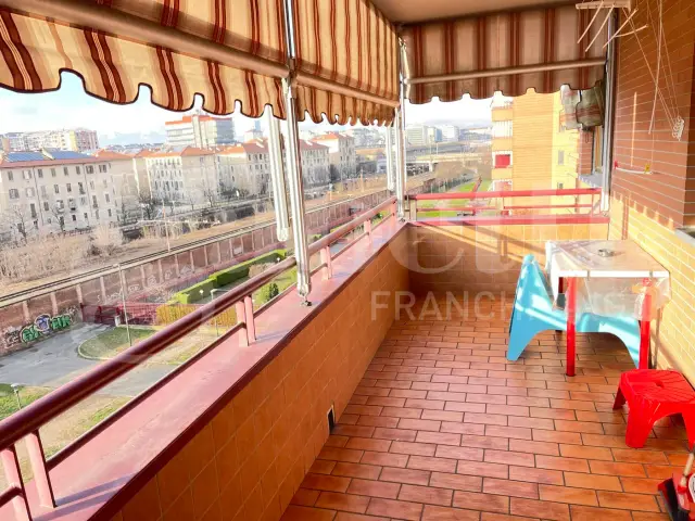 PIANO ALTO, PANORAMICO, COMPOSTO DA INGRESSO SU AMPIO SOGGIORNO, CUCINA ABITABILE, DISIMPEGNO, 2 CAMERE, 2 BAGNI, BALCONE, SPAZIOSO TERRAZZO, CANTINA E SPAZIOSO BOX AUTO SINGOLO AMPIO COMPRESO.